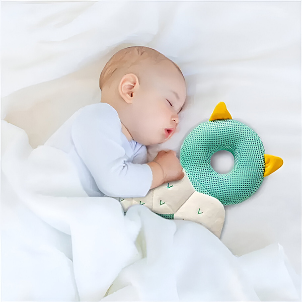 Seda pehmet ja kaisus beebi peapatja saab kasutada rahustavaks kaaslaseks teie lapsele uinumise ja magamamineku ajal. Plüüsne, hingav materjal on õrn teie beebi nahale, tagades, et ta jääb mugavaks ja rahulikuks. See tuttav, hubane kohalolek aitab teie beebit rahustada, hõlbustades tema lõõgastumist ja uinumist.