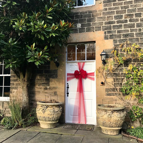 Riietage oma uks meie luksuslike vibudekoristustega. 750 cm pikkuse paelaga saate kujundada ja lisada oma välisuksele kauni piduliku kujunduse. Olgu tegemist siis jõulude, pulmade või beebiüritustega, RUBYBOW täiendab pidulikkust.