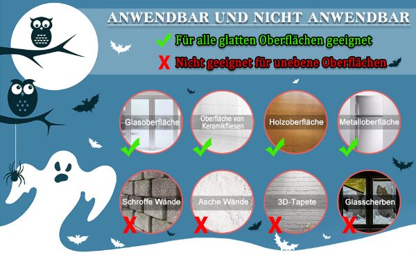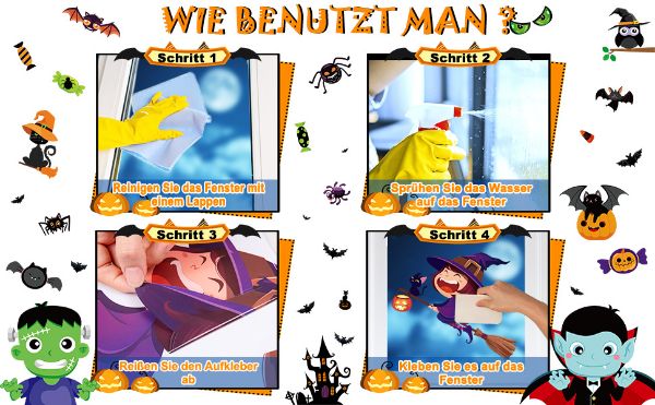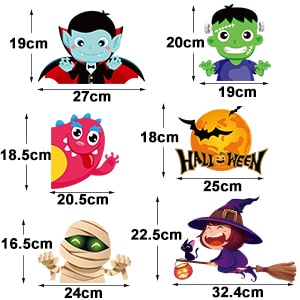 - Suurus: Halloweeni aknakleebised, mis koosnevad 10 kleebisest, iga kleebis 21 x 29,5 cm.