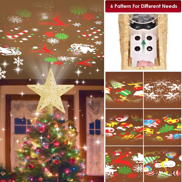 Vaheta lumehelveste, jõuluvana, sokkide ja muu vahel, kasutades vahetatavaid projektsioonikilesid.