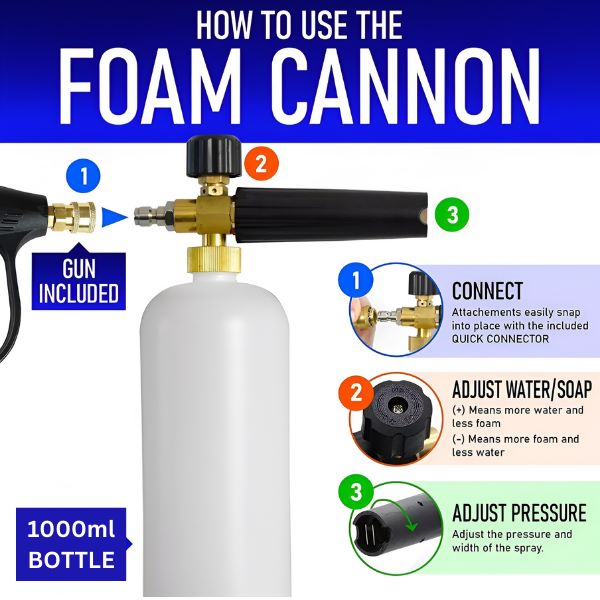 1 x FOAMSTER kõrgsurvevahupüstol auto pesemiseks.