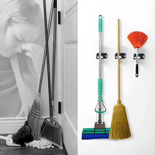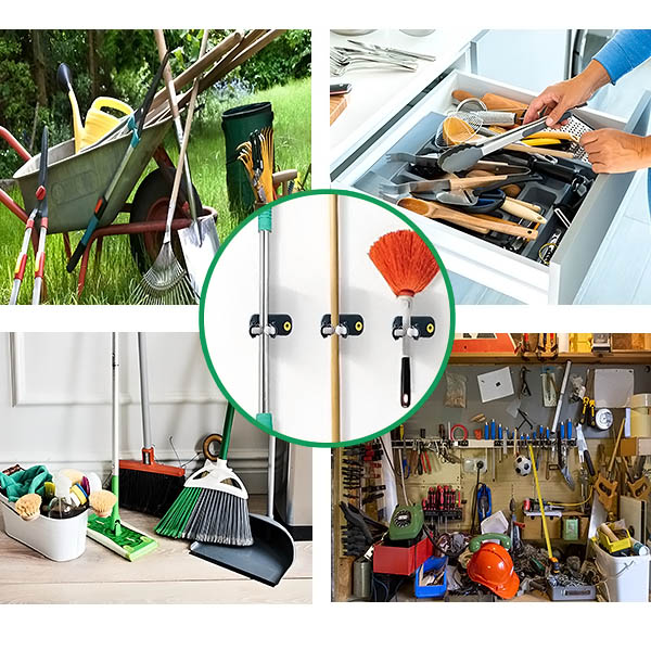 🧹 Hoidke oma ruumi korralikult ja korras meie 3 mitmekülgse hoidja komplektiga! Ideaalne moppide, luudade ja muu korraldamiseks kodus, garaažis või aias. 🚪🧺