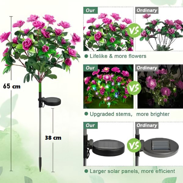 🌸 Muuda oma õueala päikesepaneeliga elutruude asalealillede abil, mis süttivad automaatselt hämaruse saabudes.