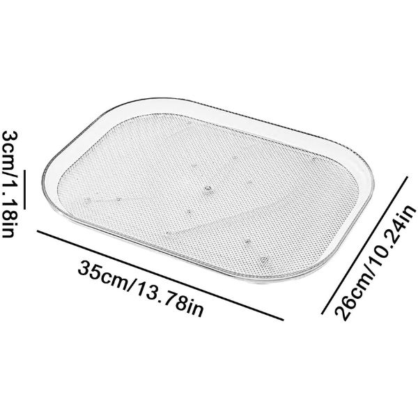 Hoidke oma külmkapp korralikult ja korras meie läbipaistva ristkülikukujulise külmkapi kandikuga. See 360° pöörlev külmkapi korraldaja on ideaalne lihtsa juurdepääsu ja maksimaalse ruumikasutuse jaoks. Seda on lihtne puhastada, sellel on libisemiskindlad iminapad ja see ei vaja paigaldamist.