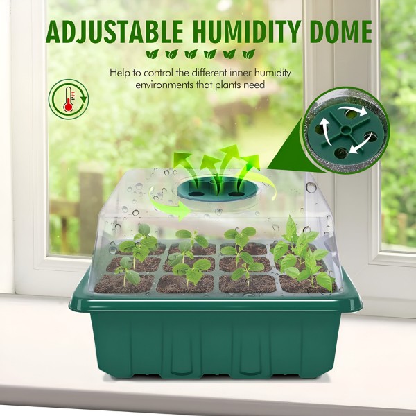 Igal alusel on 12 auku ja kaas ventilatsioonilülitiga. Nüüd saad reguleerida niiskustaset ja tagada oma seemikutele parim keskkond. Kasvata tervislikke, hästi õhustatud juuri tugevamate taimede jaoks.
