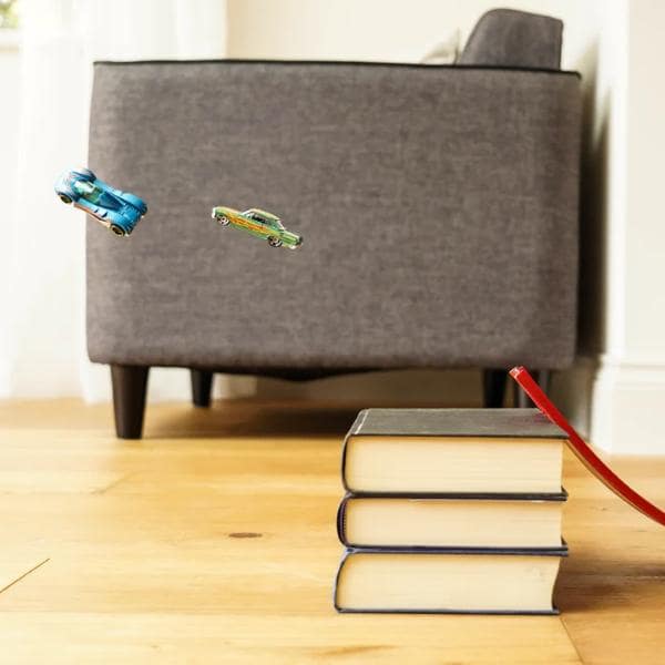 Kasutage oma olemasolevaid mänguautosid, kinnitage see lihtsalt akna või ukse külge, veeretage välja ja alustage võidusõitu – jõuallikaks on ainult gravitatsioon, ilma patareide või kulukate lisaseadmete vajaduseta.