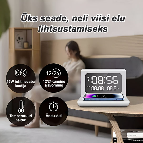 ✅ Suurenenud tootlikkus – Alustage oma päeva täielikult laetud seadmete ja õigeaegse äratusega.